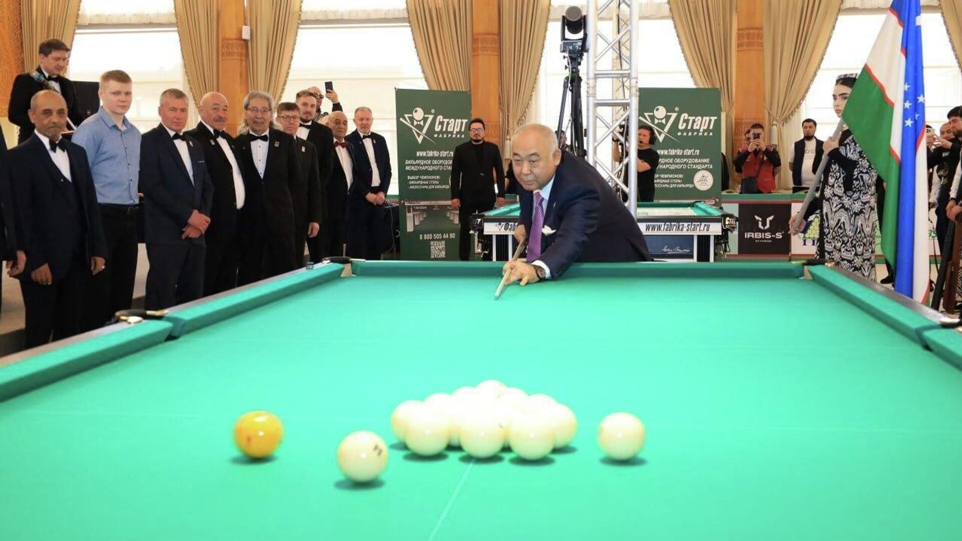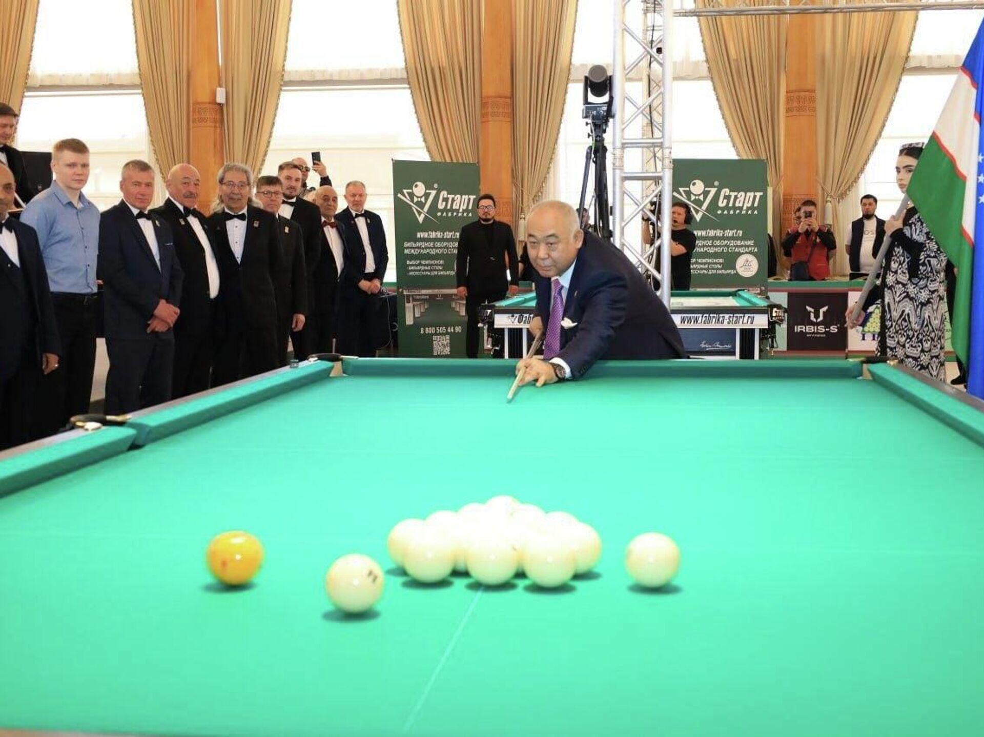 Они принимают участие в чемпионате мира по бильярду, который проходит в туристическом комплексе Silk Road Samarkand.