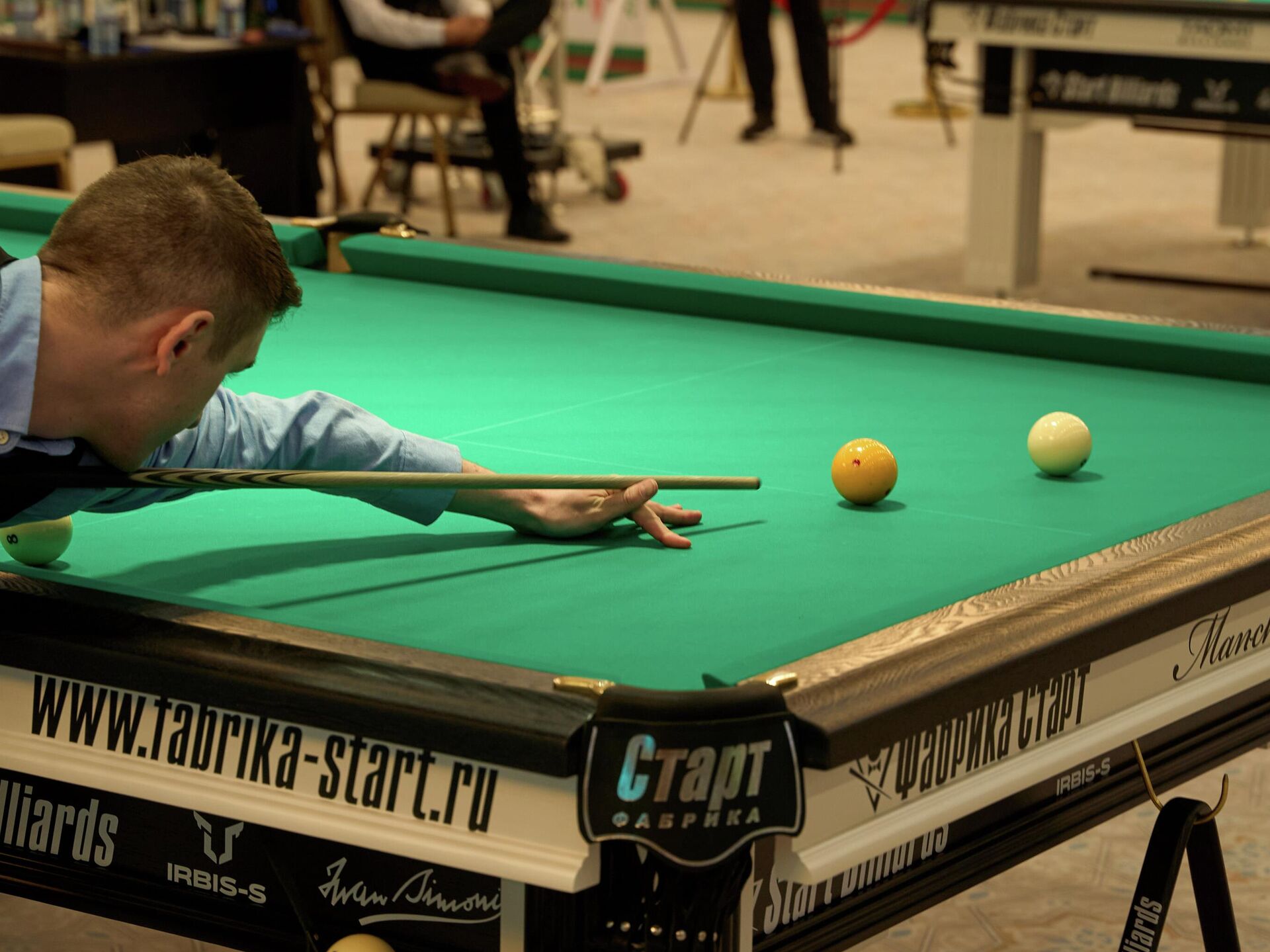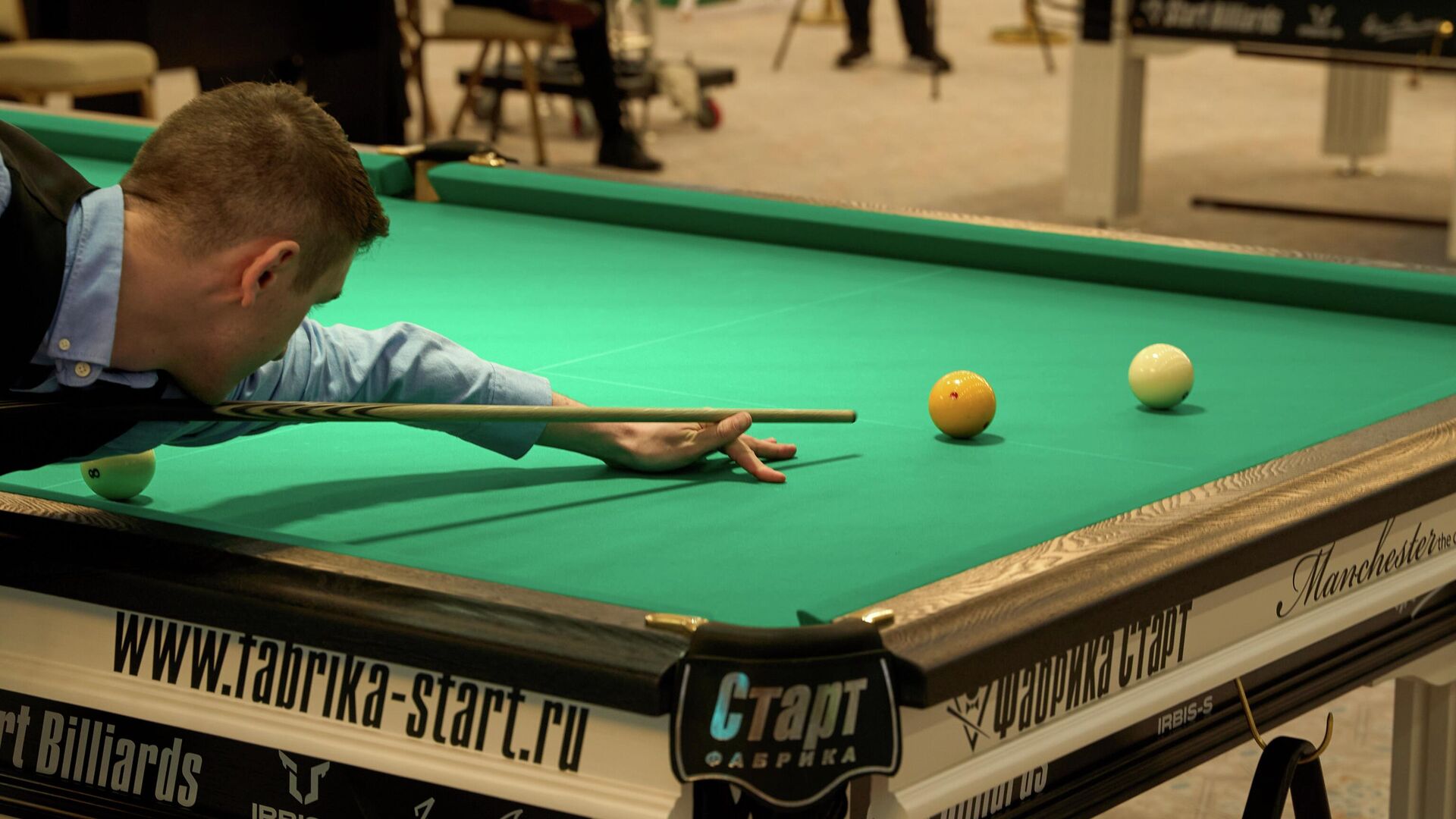 "Мы привезли 12 столов профессиональной серии Liverpool 3. Наши специалисты полностью организовали техническую сторону чемпионата. Бильярдный стол — это сложное оборудование. На установку ушло два дня. Были установлены каркас, плиты из натурального сланца, натянуто лучшее сукно. В итоге мы имеем эталонное оборудование на чемпионате мира", — рассказала представитель фабрики "Старт" Александра Маняхина.