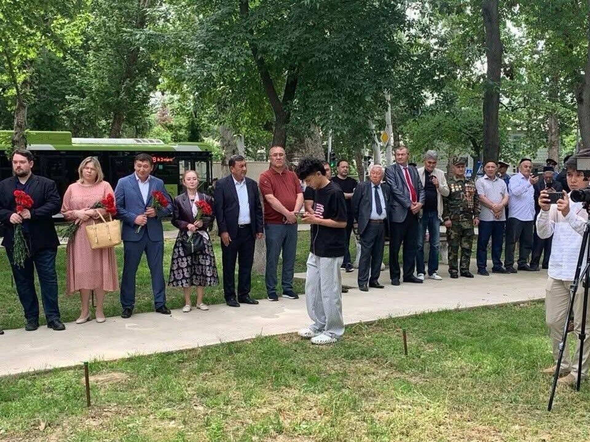 Церемония прошла у мемориала "Памяти ликвидаторов аварии на Чернобыльской АЭС", расположенном на массиве Спутник, сообщает Русский дом в Ташкенте.