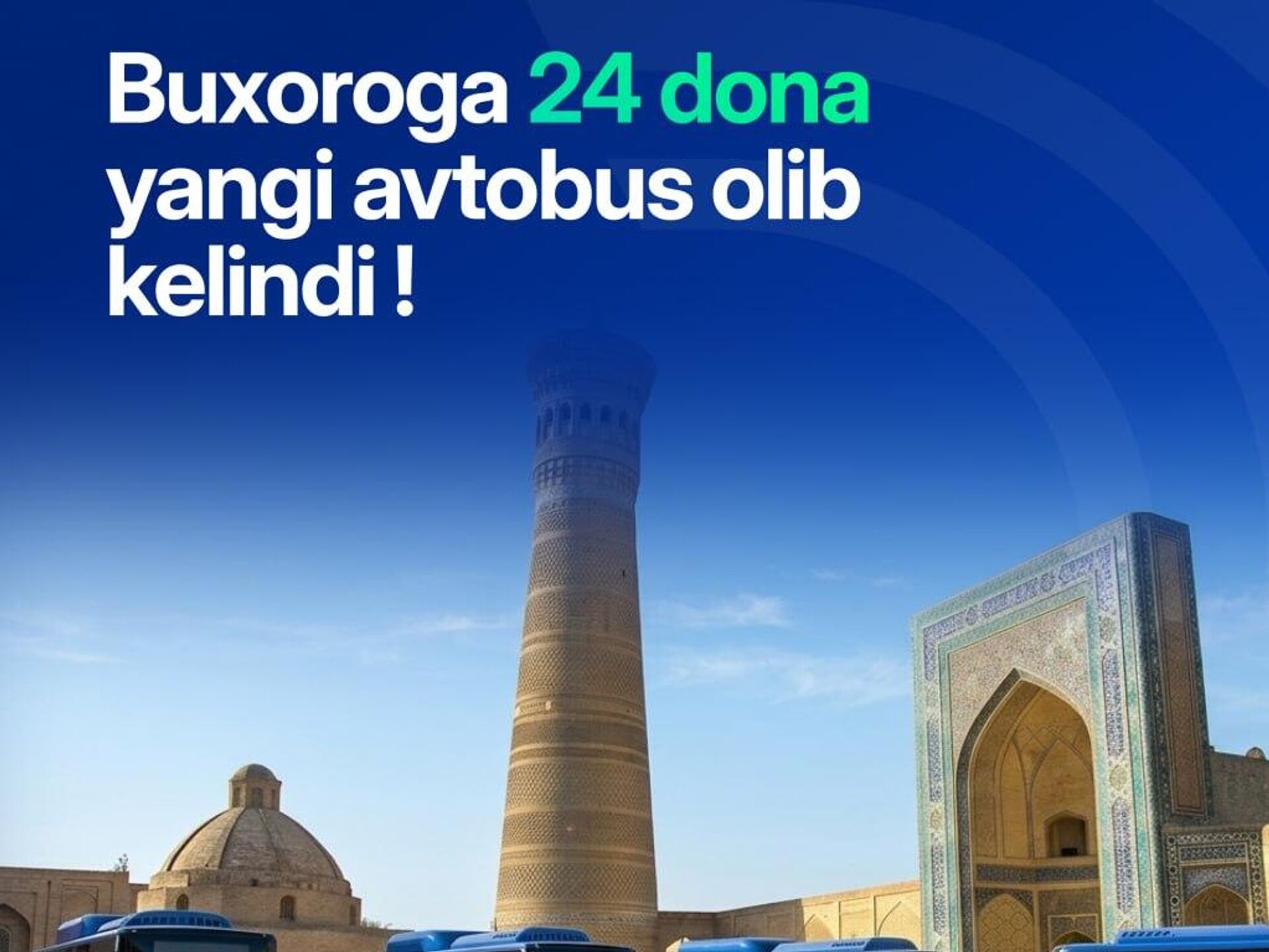 В Бухару доставили 24 новых автобуса.Они будут работать в новой городской сети маршрутов общественного транспорта, сообщает Минтранс.@SputnikUzbekistan